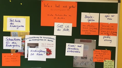 Einen ersten Überblick über die verschiedenen Aktionen gibt Ihnen die grüne Schautafel, die hinten links im Kirchenraum steht. Aber auch ohne Tafel sind Ihnen vermutlich die verschiedenen Aktionen aufgefallen, ob es nun die verstärkten Kinder- und Familiengottesdienste sind oder ein Filmprogramm unter Corona-Bedingungen. Erste, kleine Schritte, um Gemeindeleben in St. Markus als Heimathafen weiter lebendig zu erhalten.