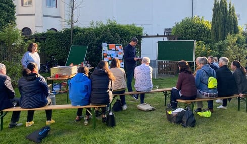 Die Einladung zu einem Informations- und Diskussionsabend in den Garten von St. Markus stieß auf ein reges Interesse. Nach der langen Zeit von Corona-Einschränkungen war das große Bedürfnis förmlich zu greifen, ins Gespräch zu kommen und das Gemeindeleben wieder aktiver zu gestalten. Mehrfach wurde angesprochen, dass der Kontakt zur Gemeinde durch Corona geradezu abgerissen sei. Von daher war ein Schwerpunkt des Austausches, wie das Gemeindeleben wiederbelebt werden, welche neuen Möglichkeiten der Begegnung geschaffen werden könnten. Insbesondere sollen die Messfeiern für alle Gruppen und Generationen in der Gemeinde ansprechend gestaltet werden. So war auch ein häufig genannter Wunsch, dass das Gespräch zwischen den Generationen wieder verstärkt aufgenommen werden solle, dazu auch digitale Kanäle genutzt werden sollten.