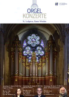Den Auftakt macht am 01. Juni 2025 unsere neue Kirchenmusikerin, Eugene Kang, mit Werken von J.S. Bach, Ch-M. Widor u.a.