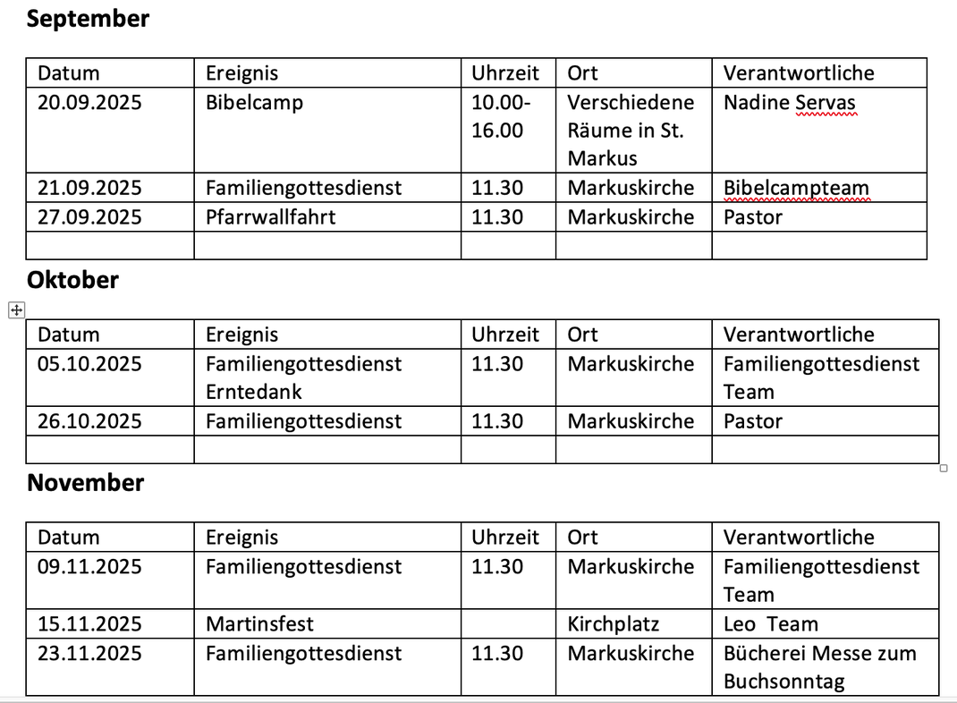 Kompletter Terminkalender St. Markus (Stand Mai 2025)